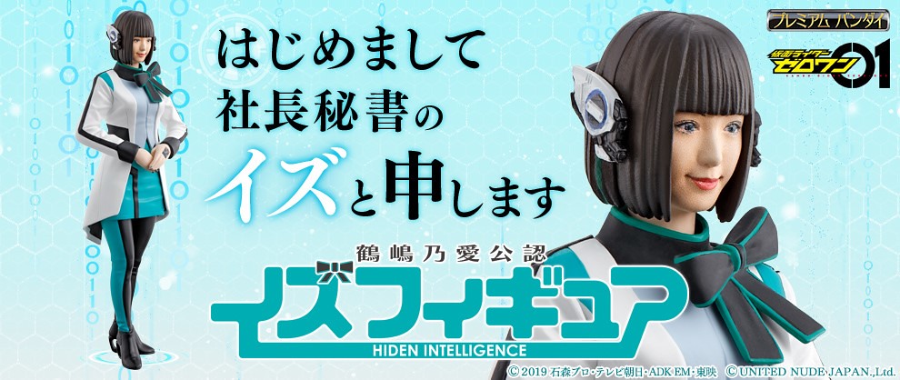 日本萬代 BANDAI 公司旗下的「假面騎士ZERO-ONE」系列,將推出以《假面騎士01》劇中的秘書型AI輔助 Humagear「伊絲」為主題的新作商品:「鶴嶋乃愛公認 伊絲 FIGURE」(鶴嶋乃愛公認 イズフィギュア),建議售價1,699 元,目前已開放網路預購,預計將於 2020 年 09 月正式發售。