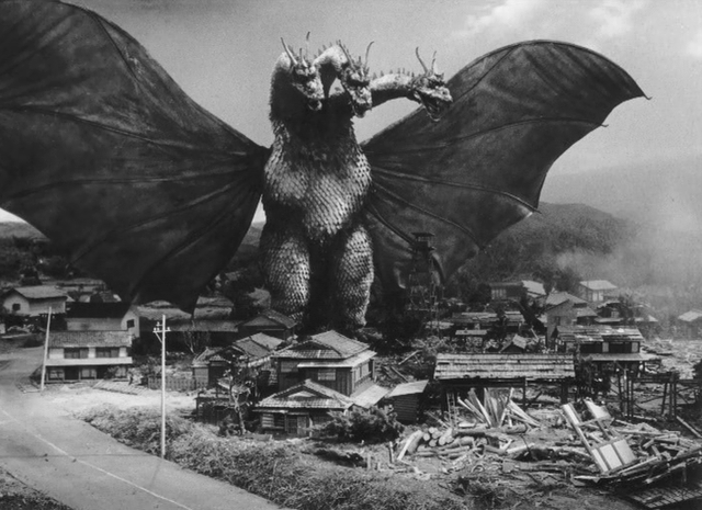 王者基多拉造型的原型印像是取於在《日本誕生》1959中登場的八歧大蛇