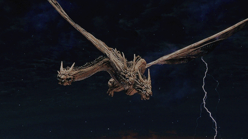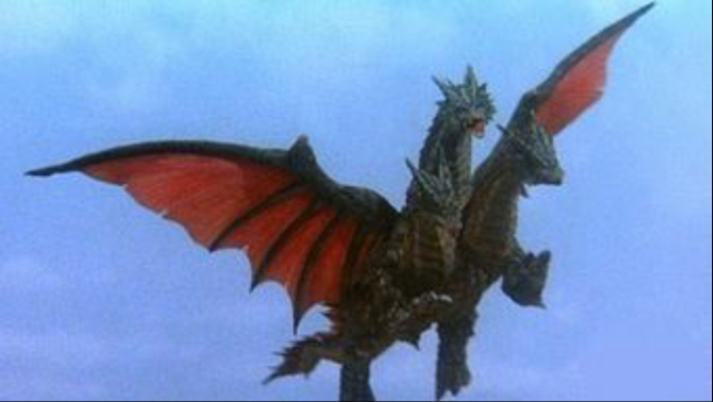 這是昭和哥吉拉系列中唯一以自己的意志行動的王者基多拉,之後的作品都被外星人控制著。