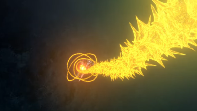 在真哥吉拉使用放射線流攻擊天空後出現,初登場時是團紫色火焰(和初代王者基多拉一樣)隨後集束成實體