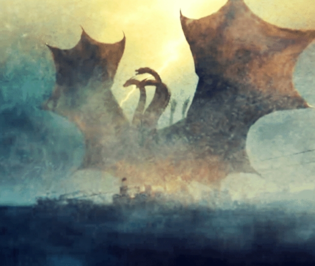 之後在地球大氣上空生成三個黑洞,伸出了三顆金色的腦袋準備吞噬哥吉拉