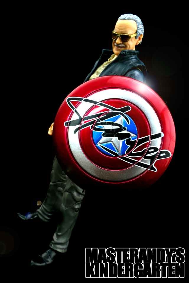 為了紀念這位現實生活中真正的超級英雄,孩之寶(Hasbro)的漫威傳奇系列(Marvel Legends)在今年推出了1:12的史丹·李可動人偶,採用了《復仇者聯盟》(The Avengers)中下棋老者的造型,並運用了相片寫實技術(Photo Real Technology)重現老爺爺開朗的笑容,除此之外,還附上了印刷有史丹·李簽名的美隊圓盾,對於漫威粉絲來說,真的是非常有紀念價值的人偶。這次的照片構想,主要都是來自於老爺爺所設計出來的漫威經典人物,搭配上各種配件與組合而生,就讓我們一邊喊著「Excelsior」、一邊微笑著懷念史丹老爺爺吧!