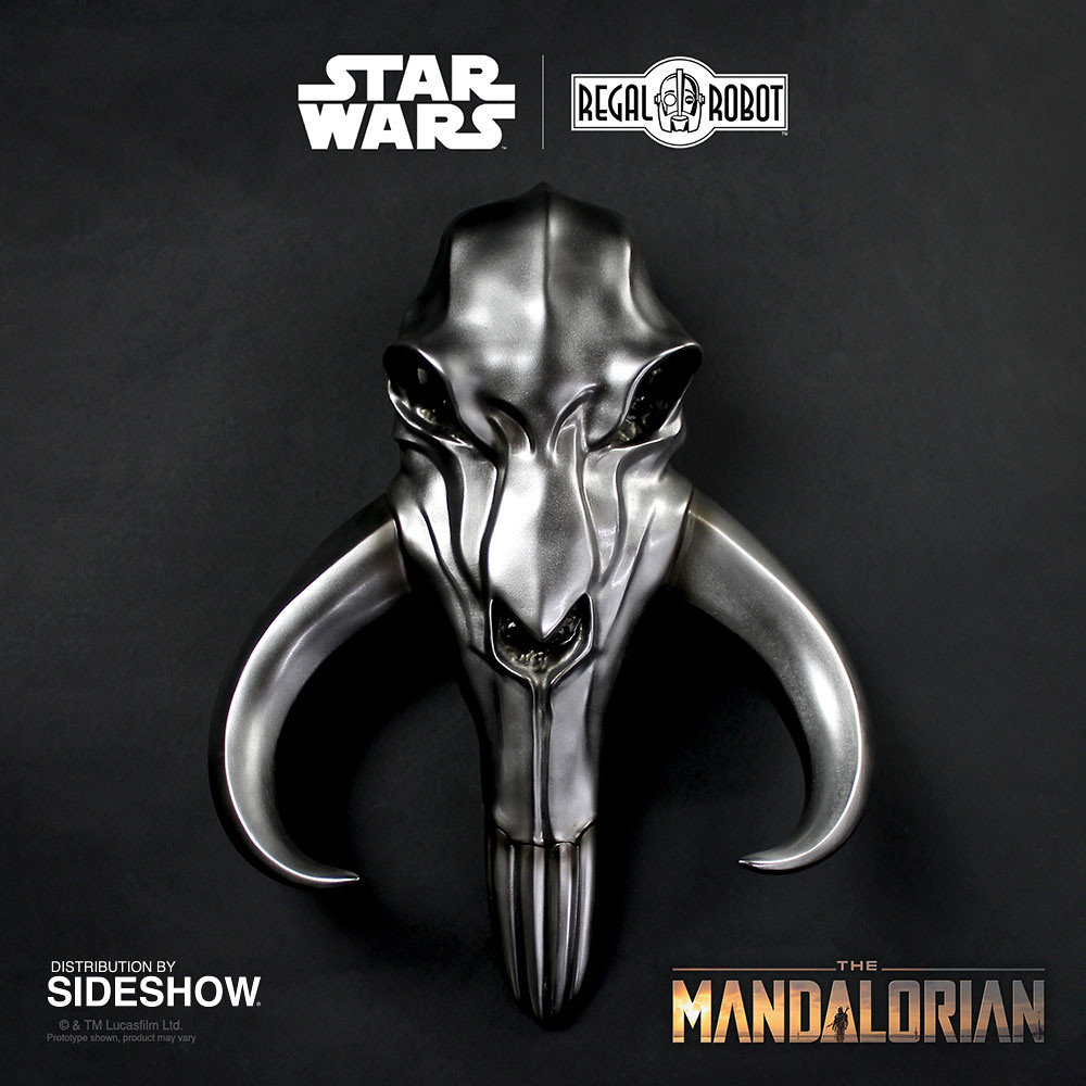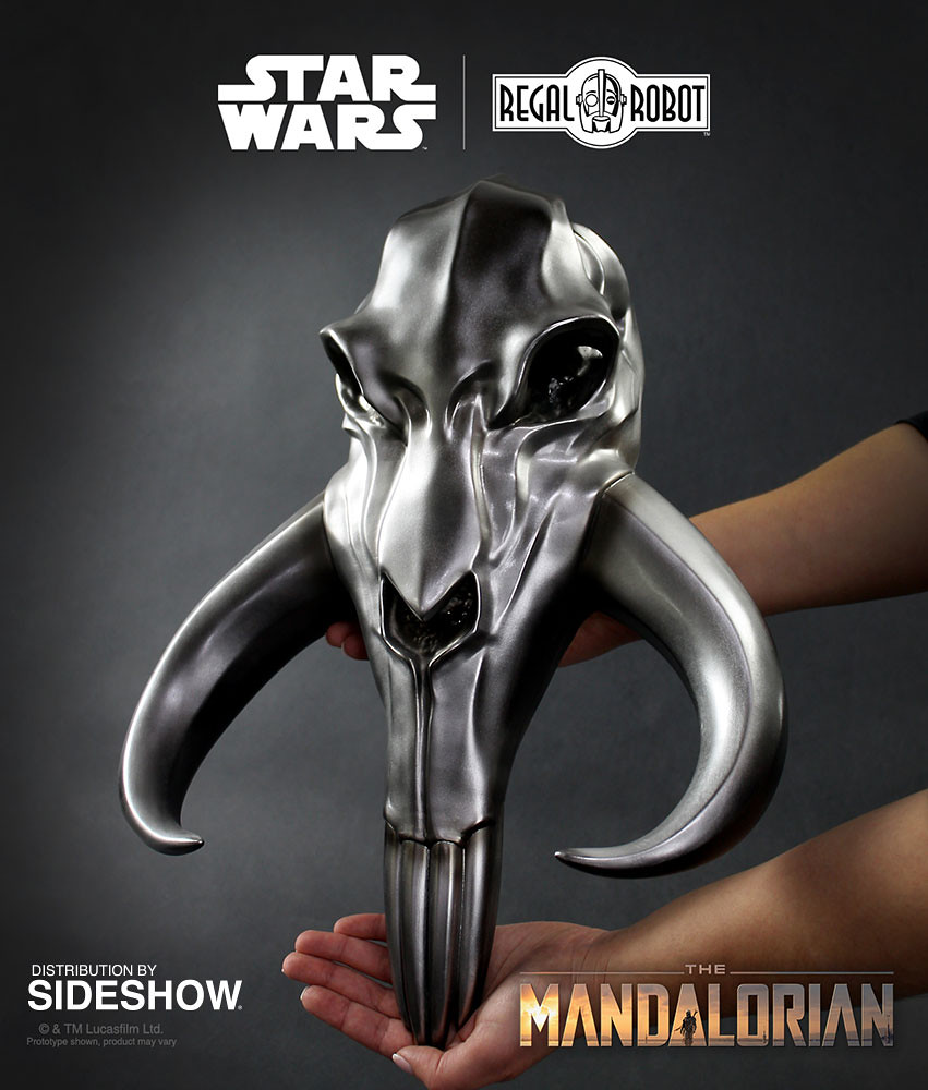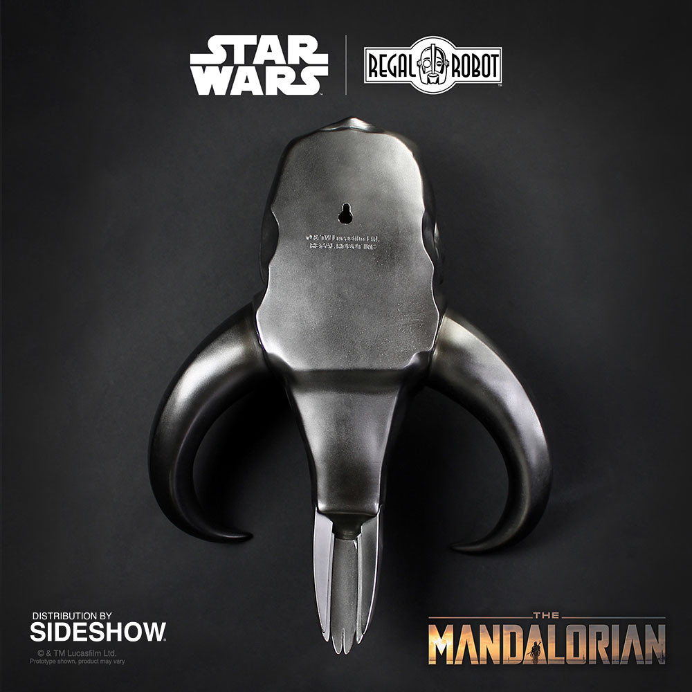 本作長約 44 公分,採用樹脂材質製作,考究地再現了第一季第三集中、出現在曼達洛人地下聚落鐵匠房間外掛飾的樣貌,厚重的金屬感塗裝、無比帥氣的造型看了相當過癮,把這掛在家裡面或是門外整個霸氣到不行!!另外,Regal Robot 也有推出骨頭版本的密索龍頭骨掛飾,公益同樣十分出色,喜歡的玩具人也可以考慮看看喔。