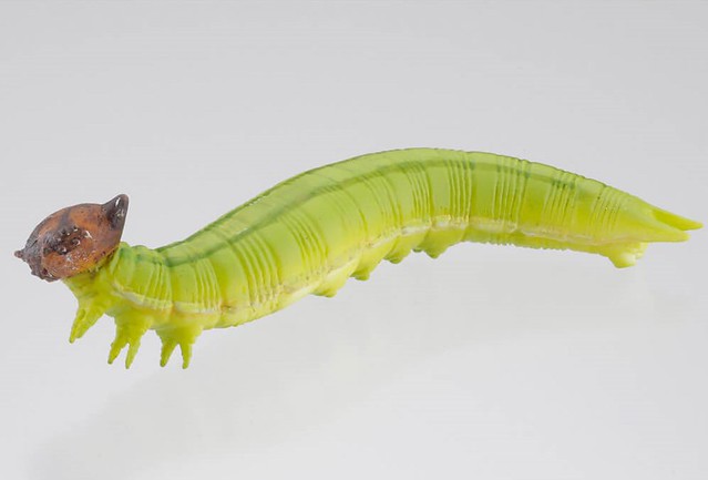 被稱為Hello Kitty的稻眉眼蝶幼蟲,有著像貓頭的獨特頭部,又被稱為貓毛蟲。
