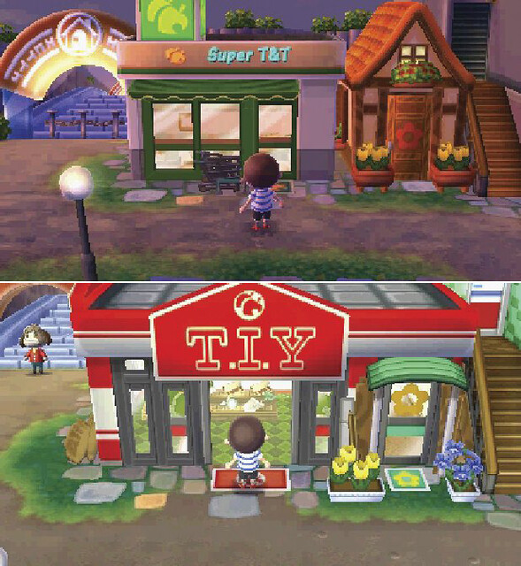 ▼ 在3DS版本的《走出戶外 動物森友會》中,當玩家村子中的NOOK商店升級到一定等級時,就會將然然的園藝店合併為一家店