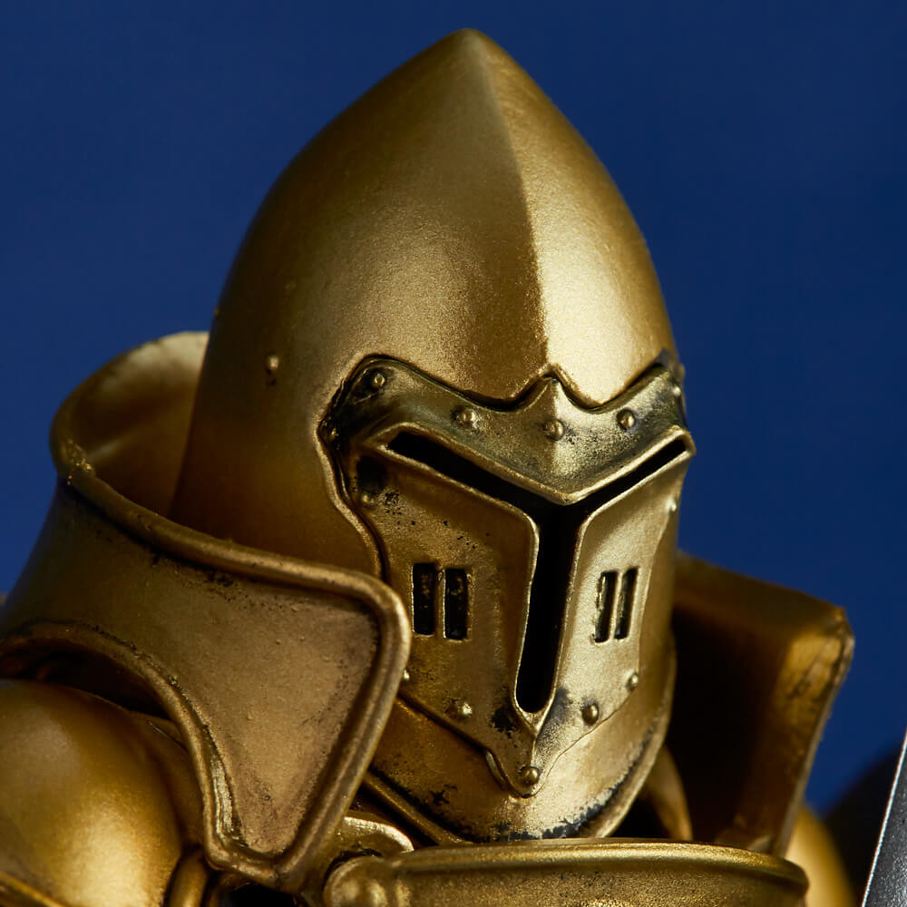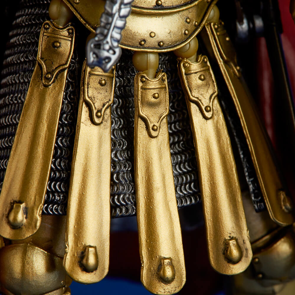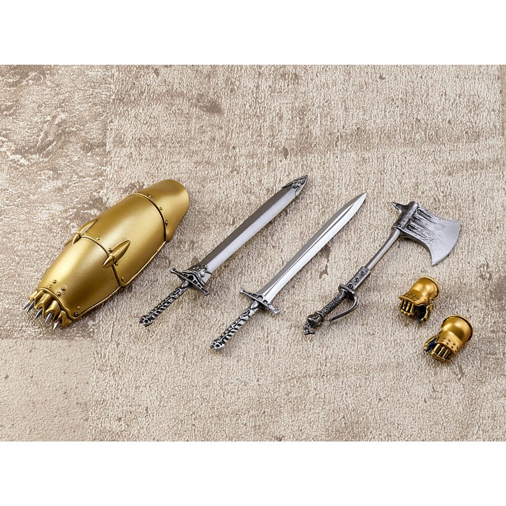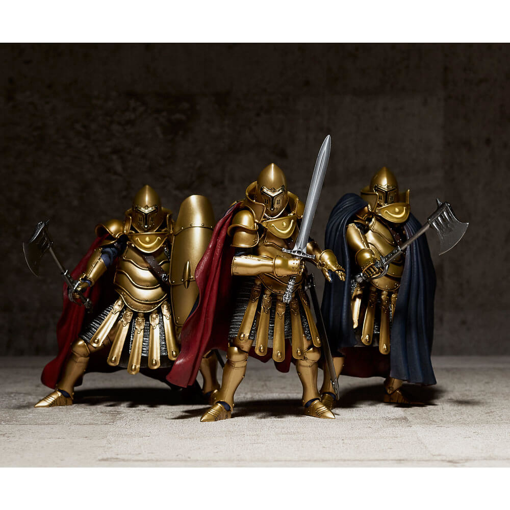 由竹谷隆之擔任造型總指揮的「多魯美奇亞裝甲兵 烏王親衛隊Ver.」高約 14 公分,全身共計 26 處可動,與「庫夏娜親衛隊Ver.」相比,除了將護甲改以飽滿的金色外,斗篷的外側也選用能跟金色平衡的深藍色表現,頭盔的面罩也還原了漫畫中類似 Y 字型的眼縫,配件除了長劍、戰斧、在下緣設置利爪的盾牌之外,還附上使整體更具威嚴的披風零件可以替換,相當帥氣!