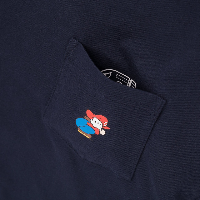 ▼瑪利歐在遊戲中按下鍵蹲下來躲砲彈,以這樣的經典動作表現在胸口口袋上,打開口袋你就可以看到「砲彈刺客」。