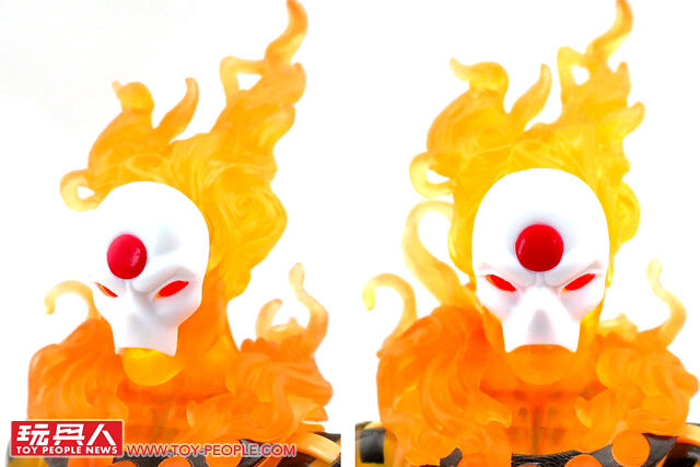 ▼頭雕,飄忽不定的火燄相當有動感,面具則是立體雕刻配合塗裝而成。