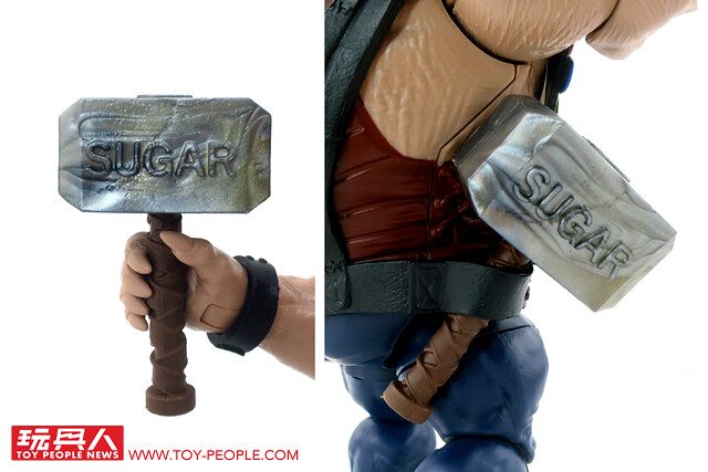 ▼上頭刻有「Sugar」字樣的大鐵鎚,除了能夠手持,也能收納在右腰的皮帶上。