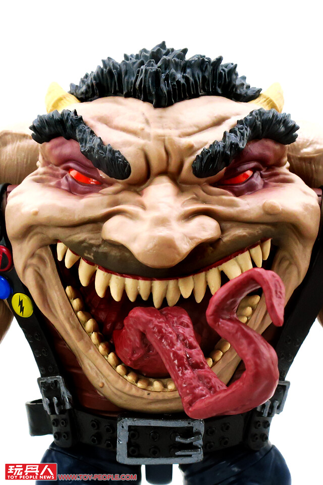 ▼來導播我們頭部特寫一下,臉部皺褶、突起的痣、利牙長舌、邪惡笑顏,不管是面部或是衣服的細節都非常到位,還有什麼能比這張變態大叔臉還要可怕呢?
