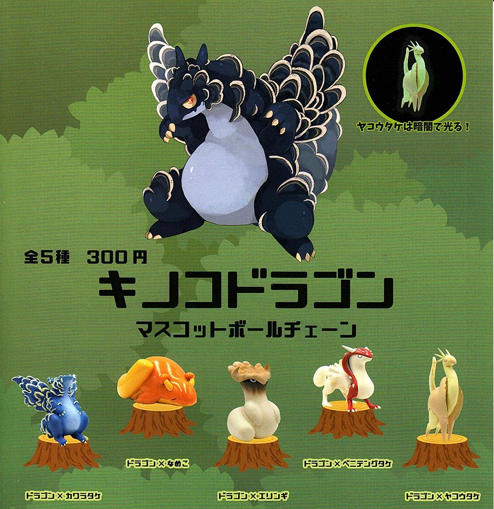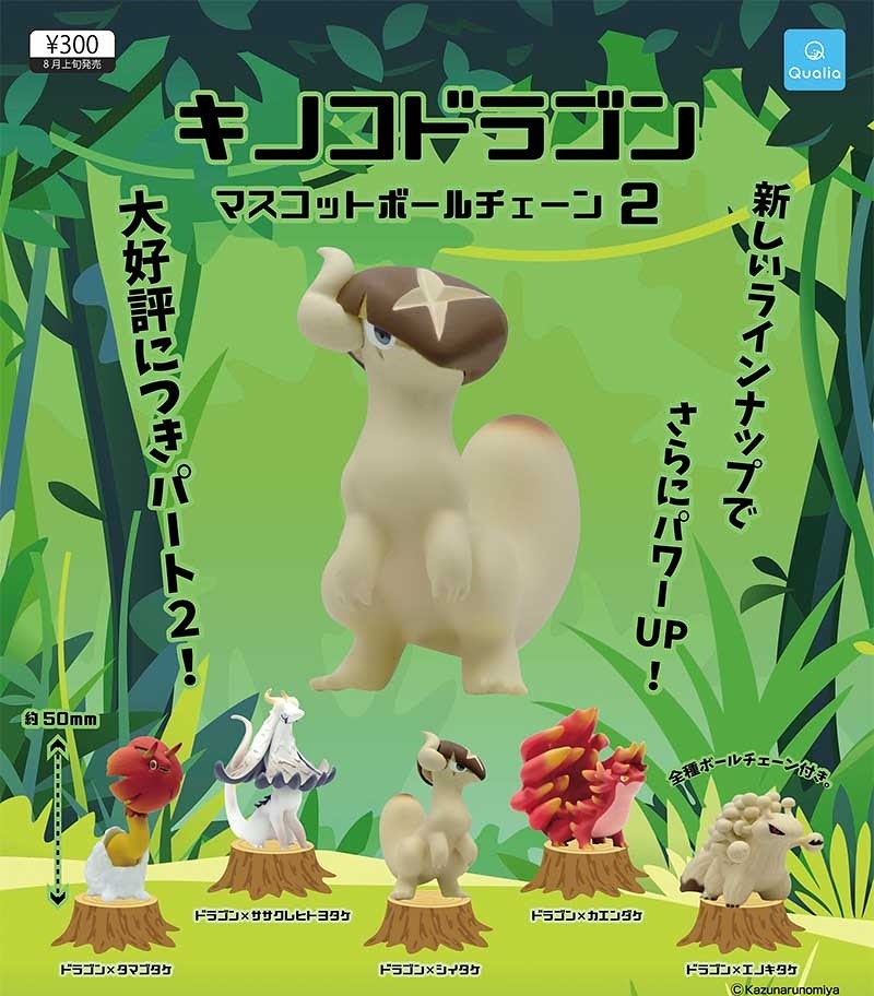 日本趣味轉蛋公司Qualia(株式会社クオリア)在推出了結合龍與魔菇的「蘑菇龍」吊飾轉蛋後,又將好評堆出續作「第二彈 魔菇龍吊飾轉蛋」(キノコドラゴンマスコットボールチェーン2),一共五種款式,參考售價為300日元,預計將於 2020 年 8 月發售。
