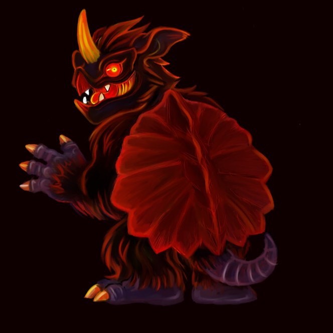 受到日本怪獸電影的深遠影響,炎龍龜身上可以看到許多東寶、大映怪獸的影子。原型師 Liz 曾經打造過一款 1:1 的炎龍龜裝,在 2015 年的 Dragon con展會上大受好評,因此一直有著希望可以將此設計變成軟膠的心願,而理念和設計上相當契合的 Mushi Bros Toys 決定完成 Liz 的這個心願,雙方共同合作,在 2019 年年底完成原型,並在 2020 年完成了軟膠的生產。