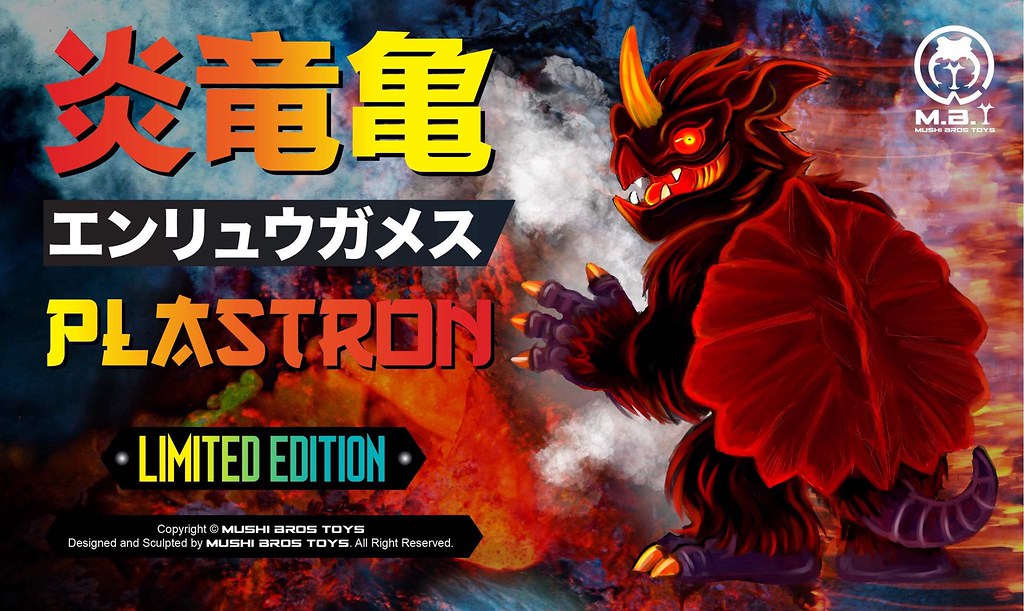 繼 2019 年推出的隕蟲獸後,新興品牌 Mushi Bros Toys (MBT)與美國的土雕原型師 Liz Johnson 合作了一款結合龍與龜的元素而創造出來的軟膠設計-「 炎龍龜」。因疫情影響而原訂於四月份的炎龍龜販售計畫將延期至五月發售,但於日前先行販售的「炎龍龜黑色素體」,推出後立即售罄,可見怪獸玩具迷們對炎龍龜的期待。