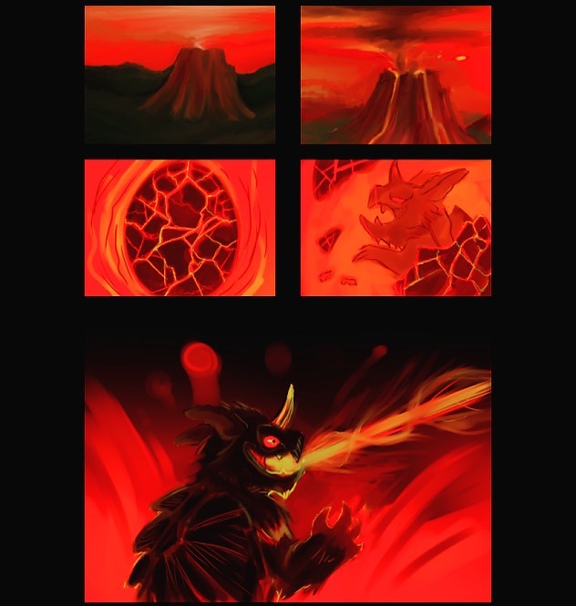 ▼炎龍龜設定為在火山帶沈睡的神獸,全身披覆著子彈也無法傷及的火鱗毛,頭上有著可以聚集電力及大自然力的龍炎角,以及輻射熱能的火燄吐息。在人類過度開發與消耗自然資源之時,深埋在火山岩漿之中的炎龍龜卵也開始跟所有自然界的悲鳴產生了共鳴...