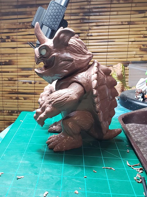 此次的「 炎龍龜」軟膠設計,尺寸高約16公分,在寬度跟厚實感來說也比隕蟲獸來得更有份量,全身上下一共有五處分件,四處可動關節。