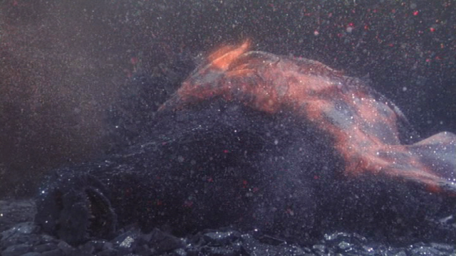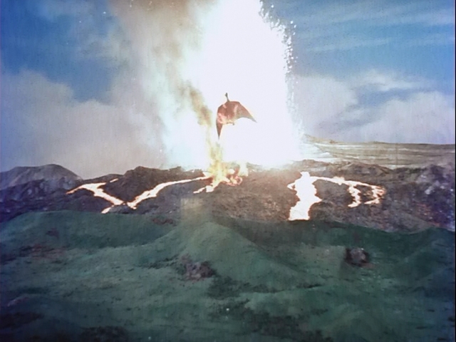 受到陸空自衛隊的夾擊陷入危機時另一頭也出現了,最後由於歸巢本能回到阿蘇山後受到自衛隊的導彈攻擊,