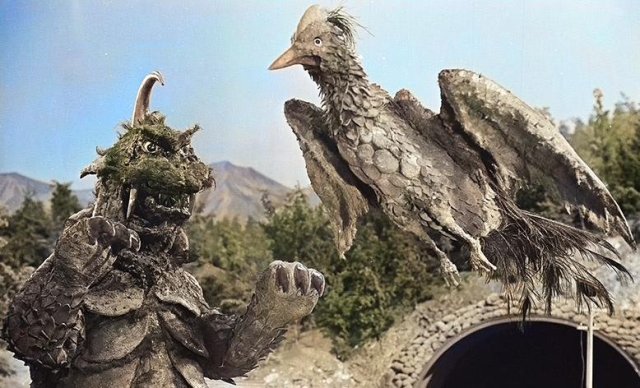 之後這個模型與哥吉拉皮套一併借給了圓谷公司,改造成了怪鳥利多拉與哥美斯