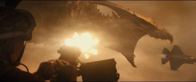 令由於前作中與摩斯拉戰鬥後無法噴出熱線的哥吉拉陷入苦戰,
