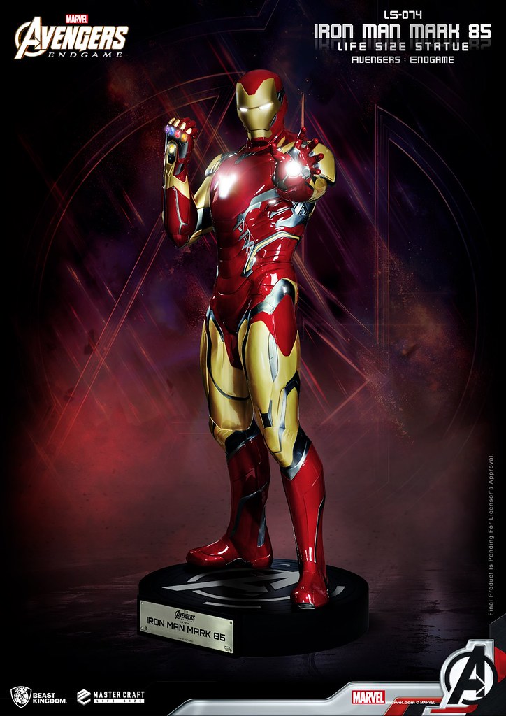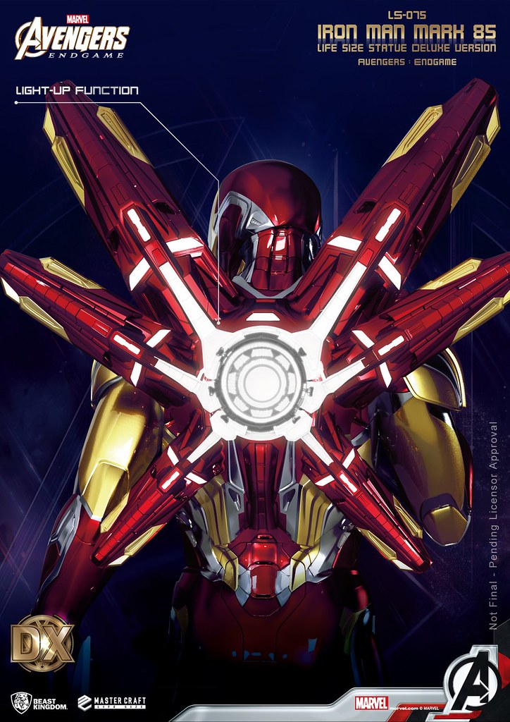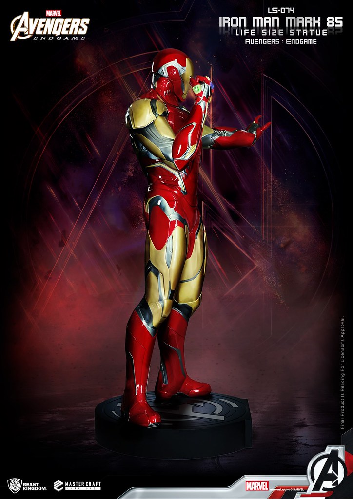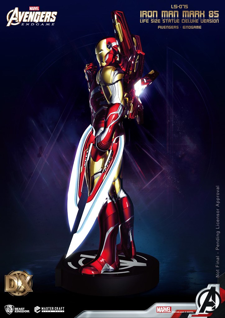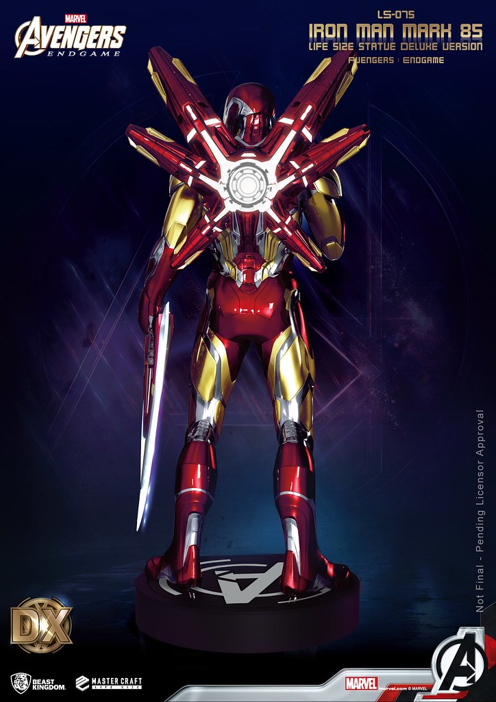 台灣玩具品牌野獸國(Beast Kingdom)於昨(29)日發表了來自《復仇者聯盟:終局之戰》的驚人新作,1:1 比例的「鋼鐵人馬克 85」(Iron Man Mark 85) 全身雕像!並將同步發行 LS-074 一般版與 LS-075 豪華版,預計將於 2020 年第三季發貨(採接單生產,發貨時間會以實際狀況為主)。