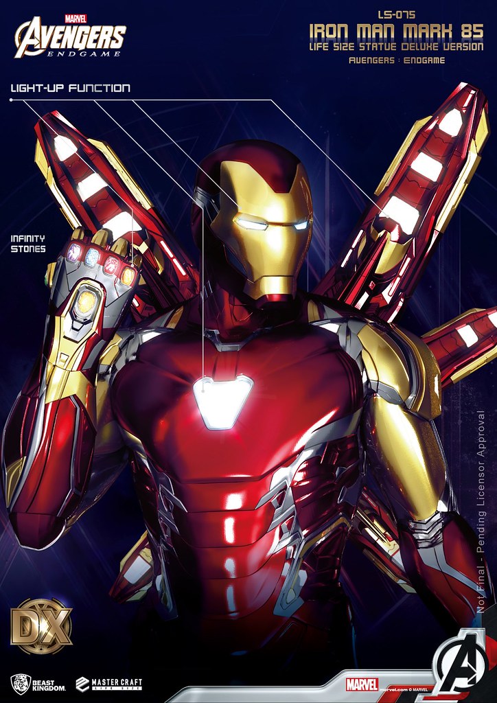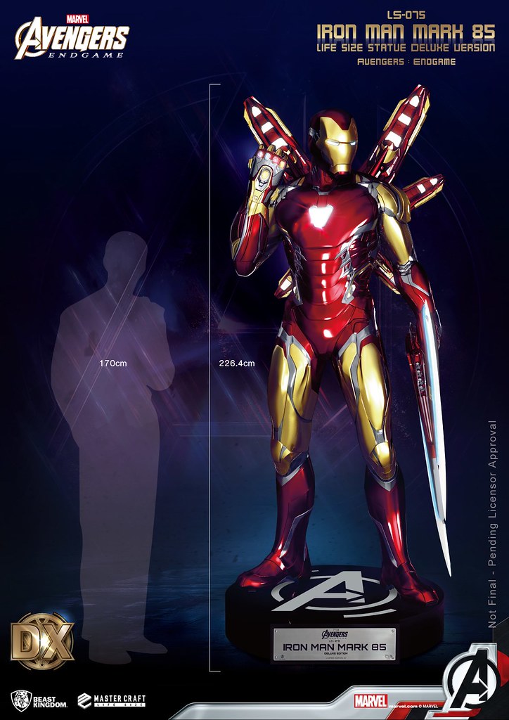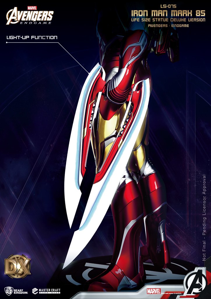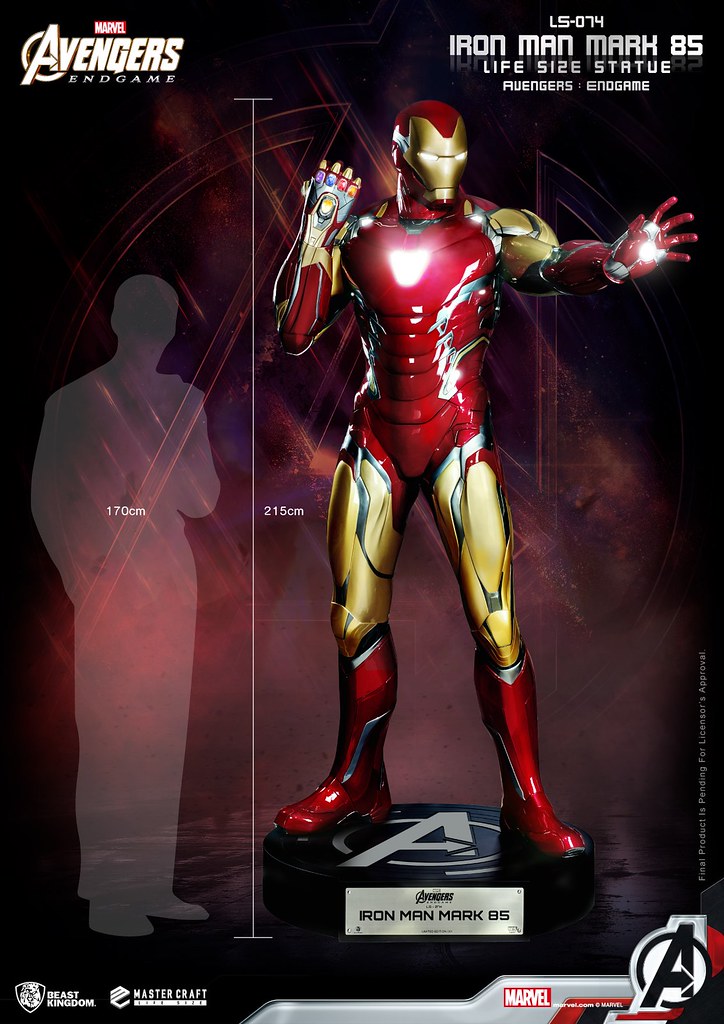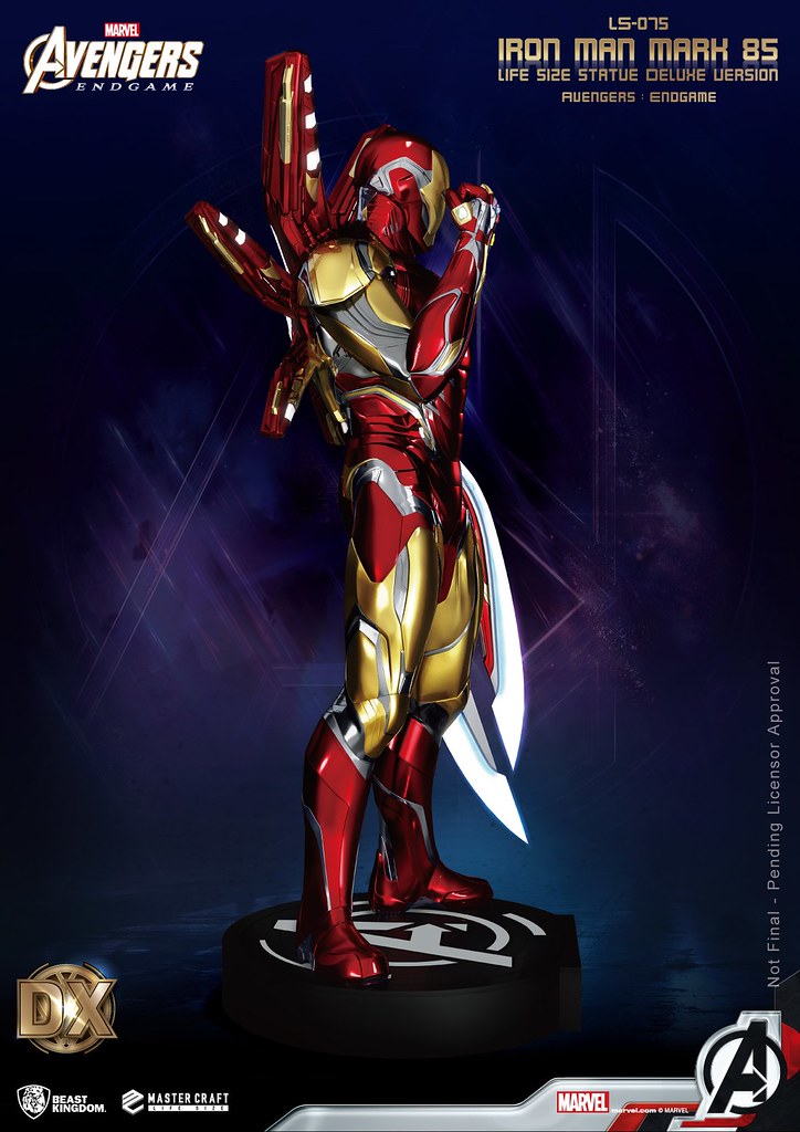 台灣玩具品牌野獸國(Beast Kingdom)於昨(29)日發表了來自《復仇者聯盟:終局之戰》的驚人新作,1:1 比例的「鋼鐵人馬克 85」(Iron Man Mark 85) 全身雕像!並將同步發行 LS-074 一般版與 LS-075 豪華版,預計將於 2020 年第三季發貨(採接單生產,發貨時間會以實際狀況為主)。