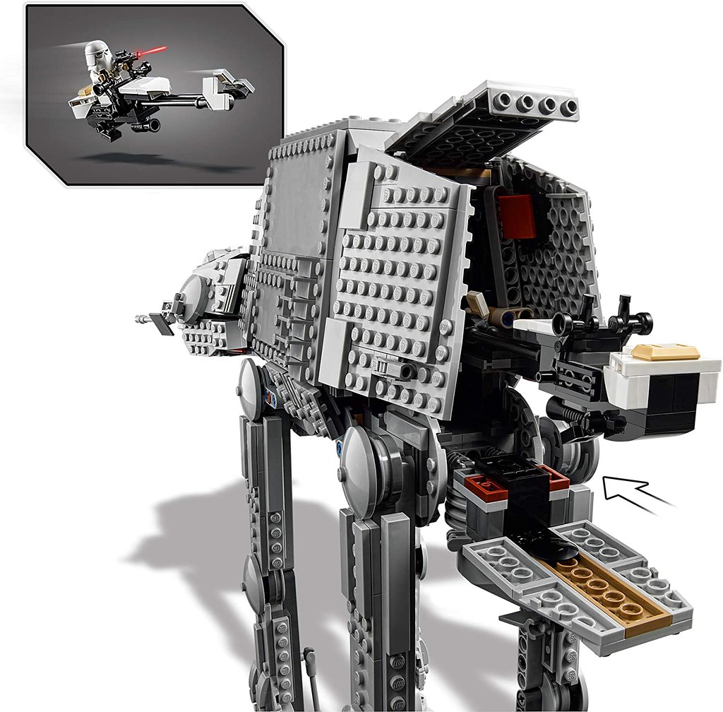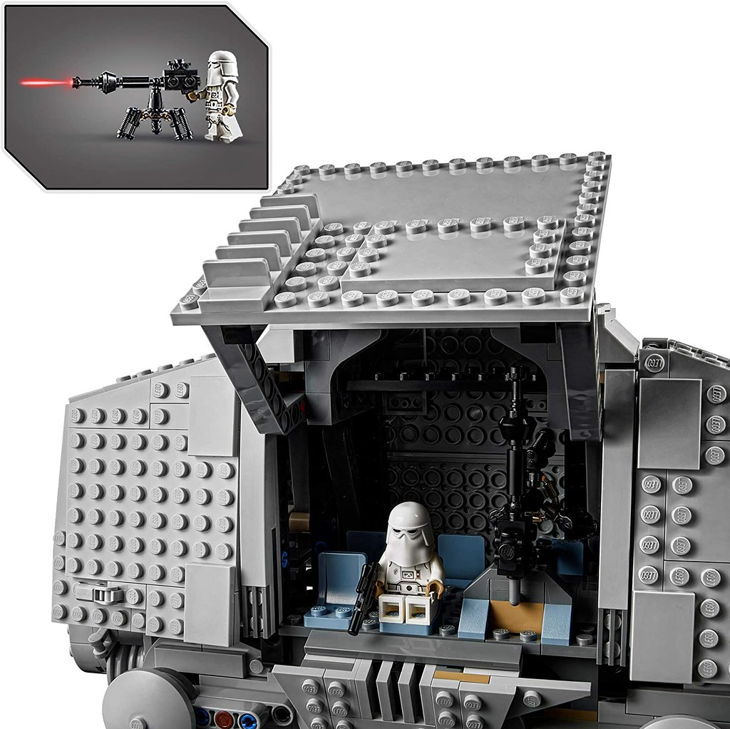 與樂高在 2014 年推出的「LEGO 75054 AT-AT」相比,這次新版的 AT-AT 最大的改變就在於重新修飾了頭部、足部的造型與表面護甲的細節,以及擴大了內部的容納空間,除了可以在頭部放入兩位 AT-AT 駕駛兵與福爾斯將軍之外,中段與後方還能收納雪地士兵跟雪地反重力摩托(Snow Speeder Bike),而且也忠實還原了電影裡路克以吊索方式突襲 AT-AT 的場面,利用連動機關就能真的讓路克緩緩上升,此外,本作還配備了「E-Web 連發爆能槍(Heavy Repeating Blaster)」供雪地兵使用喔!!