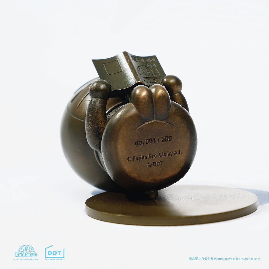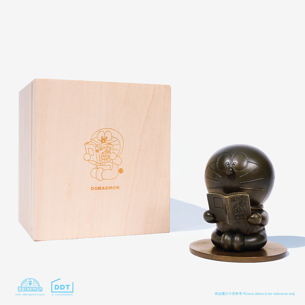 這次延續延續 DDT Store 廣受好評的銅像系列,將用圓圓雙手拿著漫畫、低頭專心閱讀《ゴロゴロ週刊》(仿《快樂快樂月刊》)的哆啦A夢,採⽤鑄銅技術製作成具有厚重金屬質感的可愛銅像!尺寸約 10.7 公分高,每枚皆在底部刻上限量編號,並以手造木盒包裝,別具趣味及收藏價值!