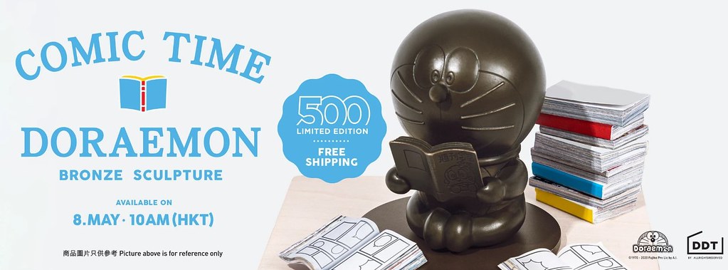香港創意單位 AllRightsReserved 旗下Ding Dong 宅配便(DDT Store)以經典國民動漫《多啦A夢》為主題打造而大受歡迎的銅像系列,在 2019 年推出生日紀念的「哆啦A夢漫畫家造型鑄銅像」後,這次將再度推出「漫畫迷哆啦 A 夢鑄銅像」,紀念哆啦 A 夢漫畫發行 50 周年!參考售價為 HKD3,299 ,預計將於 2020 年 5 月 8 日上午10點(香港時間)於官網開放預購,全球限量 500 枚!