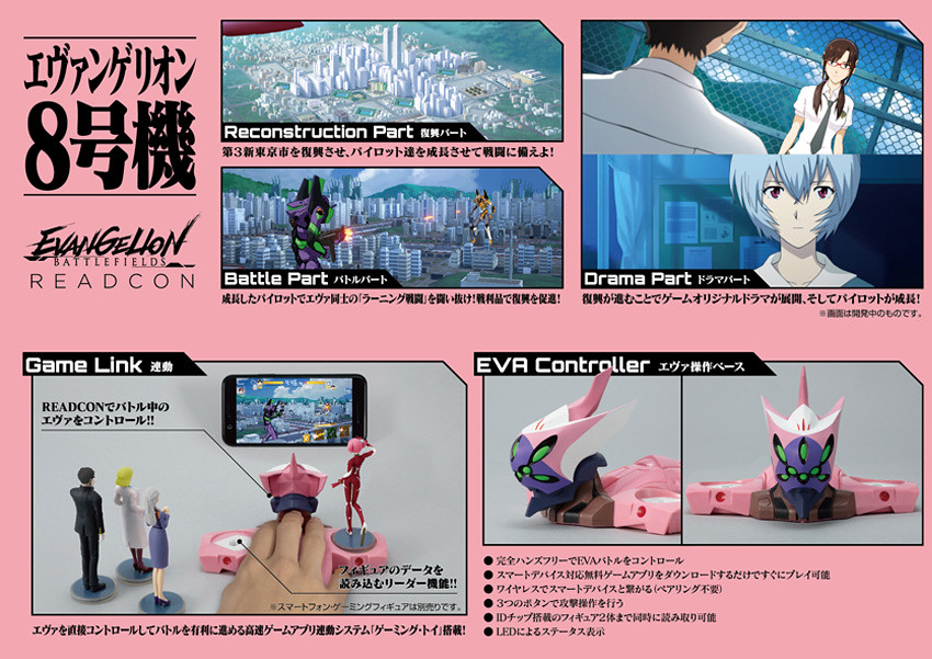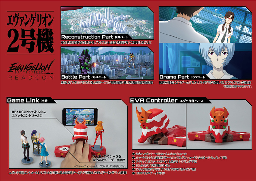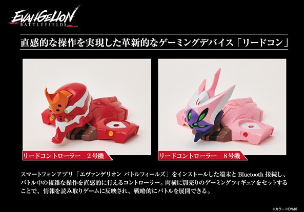 玩具型專用控制器「READ CONTROLLER」,將外型製作成 EVA 胸像,在初號機與零號機(改)後,本次推出「2 號機 / 8 號機」造型的 READ CONTROLLER 控制器。透過 Bluetooth 與已安裝《福音戰士 BATTLEFIELDS》應用程式的智慧型手機無線連接,即可更加帥氣、流暢地操縱遊戲中的 EVA角色!