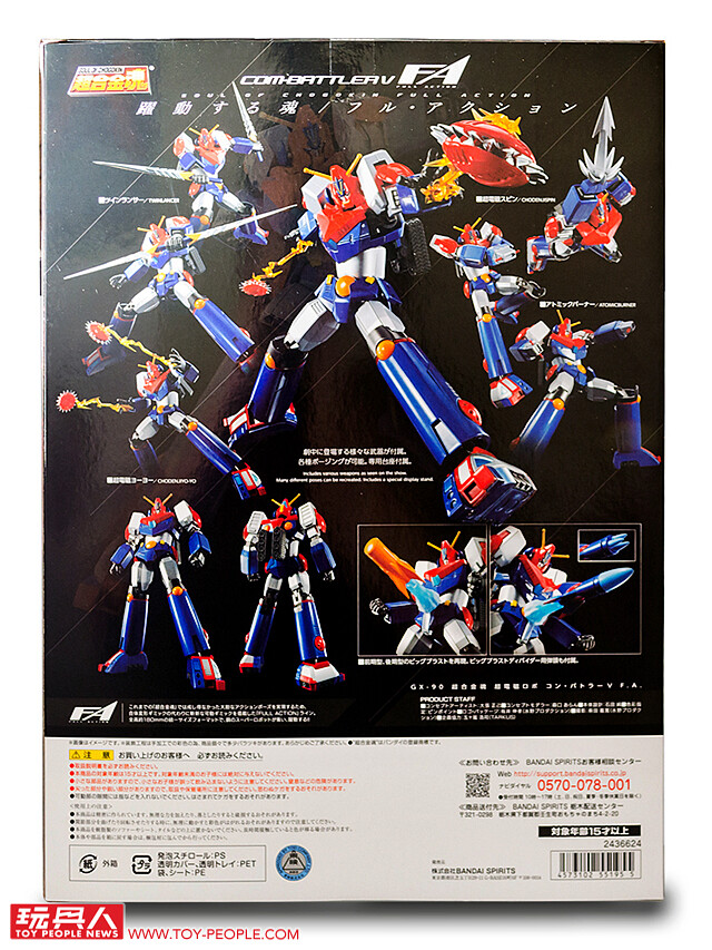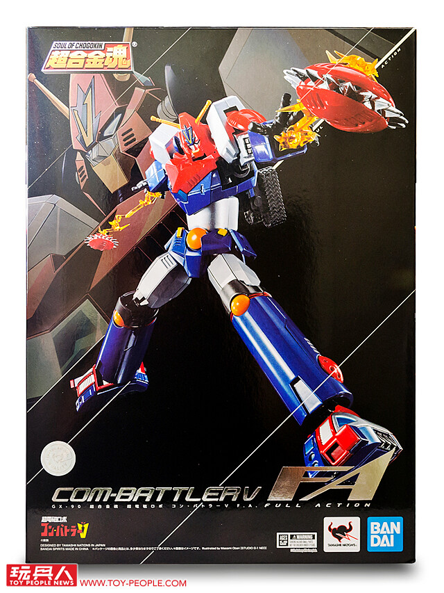 於 1976 年播映的機器人動畫《超電磁機器人孔巴特拉V》雖以歷經近 50 年歲月,但這部作品在機器人動畫老粉心中依然極具份量,也持續在電玩《超級機器人大戰》中露面介紹給新世代的機器人粉絲,可說是日本最具知名度的合體機器人之一。而玩具方面也從萬代早期的超合金、DX超合金系列到 TAMASHII NATIONS 品牌成立後的超合金魂、DX超合金魂系列,不斷以當代新技術製作出各式各樣版本的孔巴特拉V,其中主打超可動性的最新作『超合金魂 GX-90 孔巴特拉V F.A.』終於 2020 年正式發售,馬上就跟著玩具人來開箱吧!