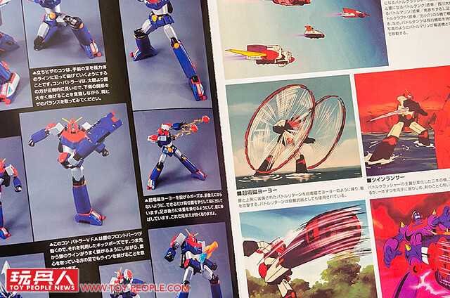 ▼ 商品內附的小冊子中,不但有把玩出各個武裝招式的示範圖與解說,更以動畫劇照帶你重新認識《超電磁機器人孔巴特拉V》的故事背景、機體解說、招式解說...等資訊,內容相當豐富。