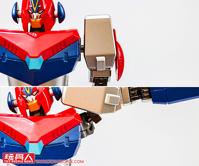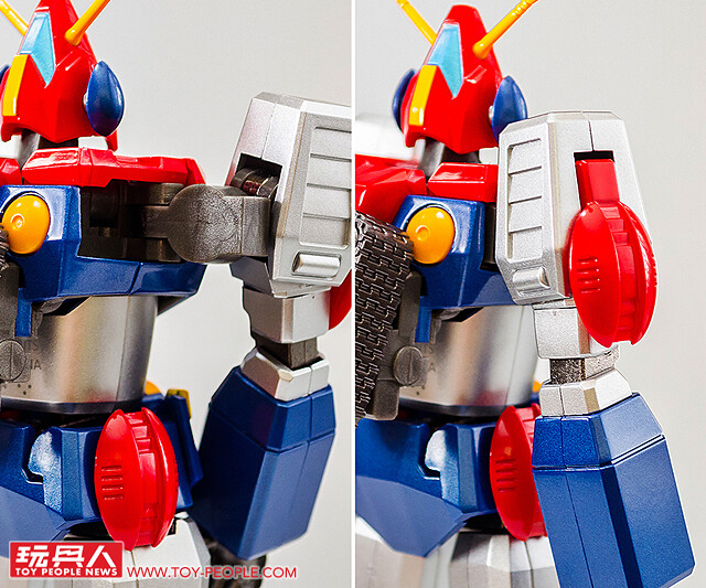▼ 不過「超合金魂 F.A.」的特徵就是捨去合體機構、特化可動設計,在原型師「森口あらん」重新詮釋下,孔巴特拉V的身形比例更符合現代審美,裝甲形狀也從原本單純的柱狀修改得更像壯碩的肌肉線條。