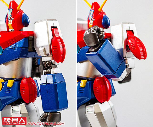 ▼ 此外肩部外側的圓盤也設計出展開機構,手臂可動範圍進一步提昇。而手肘則使用了雙重關節結構,讓上下臂幾乎能夠貼合。