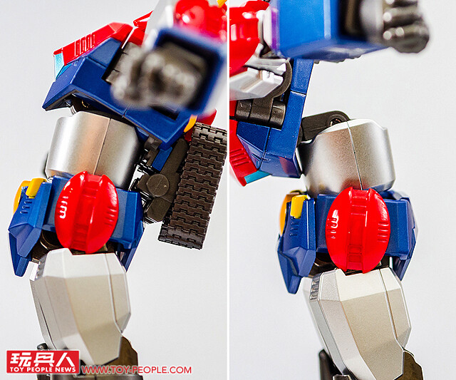 ▼ 身軀部份具備兩段可動關節,連接裙甲的關節可 360 度平轉,而連結胸部與腰部的關節採用拉出式的多段構造,能彷彿「腰斬」般將上半身前傾將近 90 度。