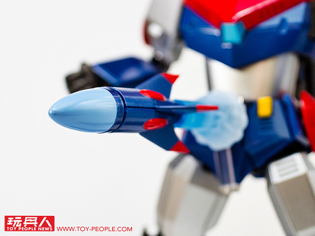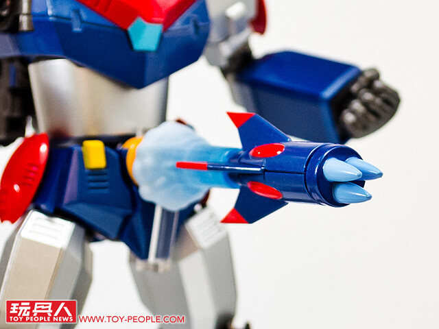 ▼ 從股間發射的巨大飛彈「BIG BLAST」包含噴射特效以及三種彈頭造型,分別為一般的黃色飛彈、藍色的集束炸彈,更能將集束炸彈彈頭替換造型,再現內部的小型飛彈。
