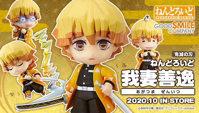 日本GOOD SMILE COMPANY 旗下種類超過千款的人氣商品「黏土人」( ねんどろいど)系列,在竈門炭治郎、竈門禰豆子之後再度發表了以人氣動漫《鬼滅之刃》為主題的系列新作:「黏土人 我妻善逸 」(ねんどろいど 我妻善逸),參考售價為 5,364 日圓,預計於 2020 年 10 月發售。