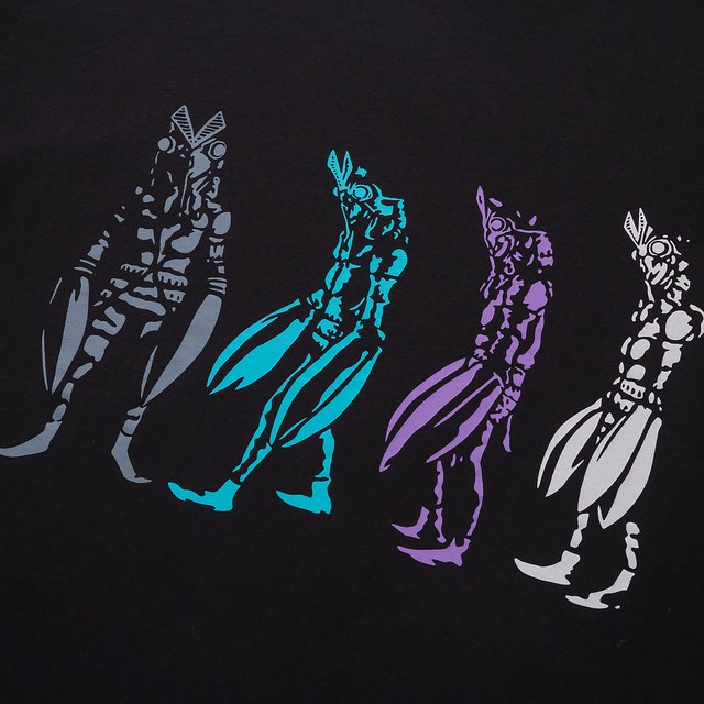 ▼ 歷代超人力霸王的強敵「巴爾坦星人」,可說是《超人力霸王》系列最具知名度的怪獸,因為能施展附身、幻影、分身術、金蟬脫殼、...等各式各樣的技能又被稱作「宇宙忍者」,這次 T 恤上的就是經典的「分身術」!