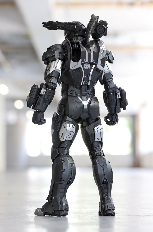 先談優點吧!整體比例很好,站著不動已經霸氣十足。整體的舊化和塗裝很精美。QC 不錯,基本上沒啥可以挑剔了!關節設計上花了很多心思,令他在可動性上取了不少分數!特別在雙臂、腰部及雙腿採用拉出式關節,縱然 War Machine Mark III 外型粗壯及魁梧,亦不減其關節的可動性。另髖裝甲前甲及側甲為可動,故減低了大腿關節與髖甲之間的影響。另整体十分 "重手",不過我一向只注重外型及可玩性,故金屬成份多少與我的評分全無關係,如是合金控則自行加減分數吧!