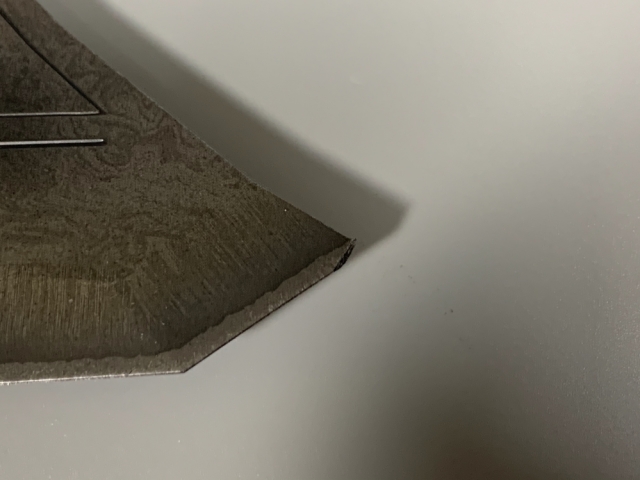 ▼這邊是另一個悲劇的地方,小編在室外拍攝時刀不小心掉到地板上,刀尖.......,只能當天然戰損了