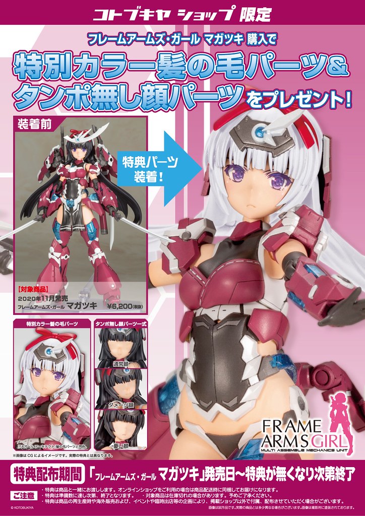 於壽屋官方商店 KOTOBUKIYA SHOP 訂購即可獲得限定特典「特殊色頭髮零件+無印刷表情零件」。