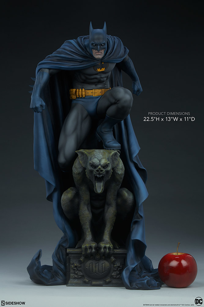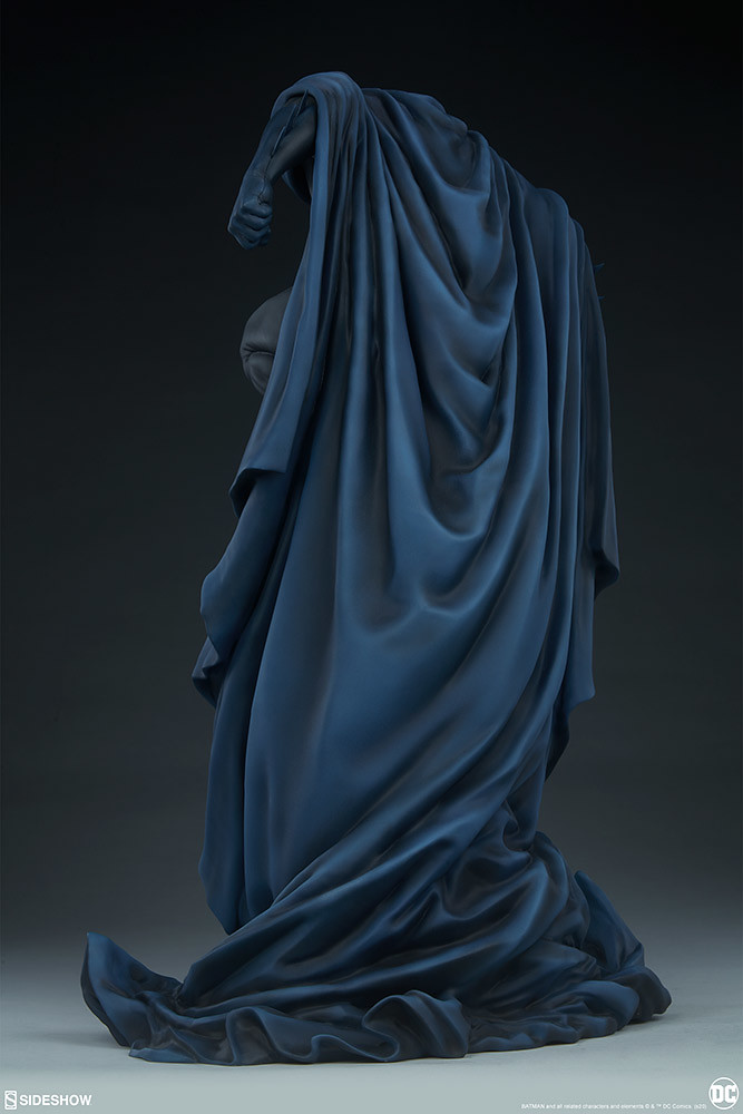 在 DC 的蝙蝠俠主題漫畫、電影、動畫作品中,入夜之後總會有一位漆黑的英雄立於高譚大廈一隅、靜靜地在暗中窺視並守護這座城市,許多蝙蝠俠的雕像作品都會以這樣經典的情境去製作,本次由 Sideshow 所打造的版本也是如此,但有趣的是這款作品採用的幽暗色調跟大量陰影,似乎更是帶出了蝙蝠俠心中那極度黑暗的一面。