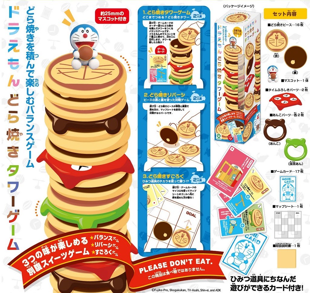 日本兒童玩具品牌 Eyeup 旗下受歡迎的益智遊戲桌遊系列,推出了以人氣動漫《哆啦A夢》為主題的新作商品:「哆啦A夢 銅鑼燒層層疊」(ドラえもん どら焼きタワーゲーム),參考售價為,預計將於 2020 年5月 16 日發售。