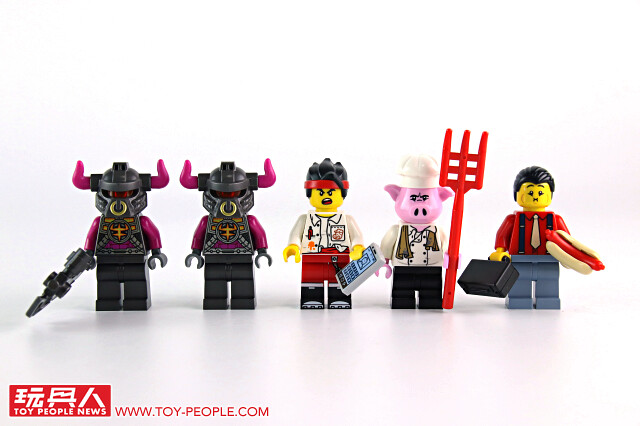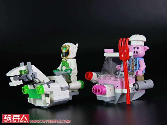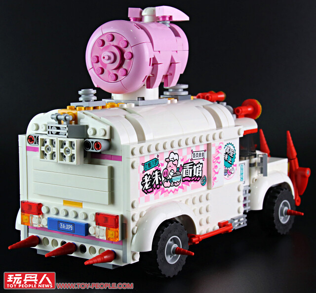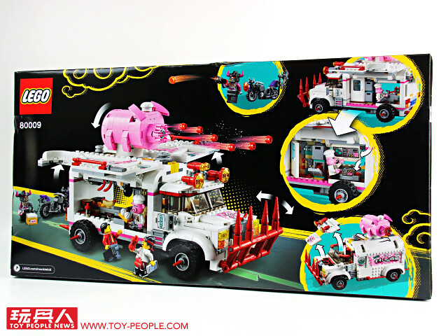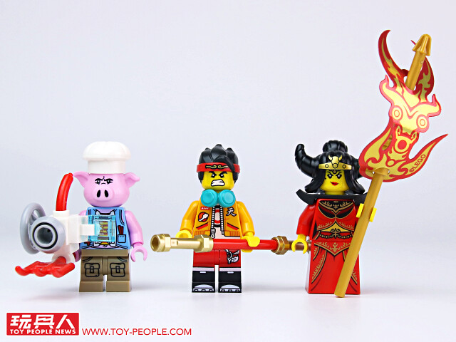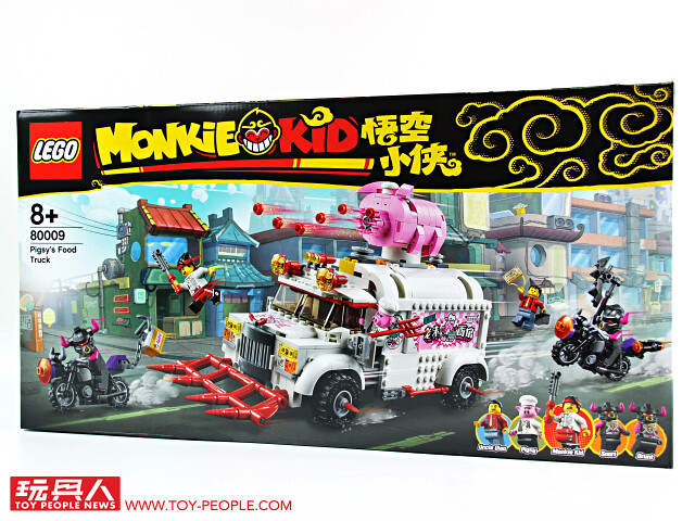 首先是「LEGO 80009 朱大廚移動釘耙車」(Pigsy's Food Truck),可以看到豬八戒變成了廚師,開著一輛配備大紅色釘耙的餐車反擊來犯的牛雜兵,餐車車頂不但設置了一隻會發射子彈的神豬,還在輪圈、車屁股加裝尖刺狀武器,殺傷力十足以為是在玩暴力四驅車膩?!,整個讓人腦洞大開!