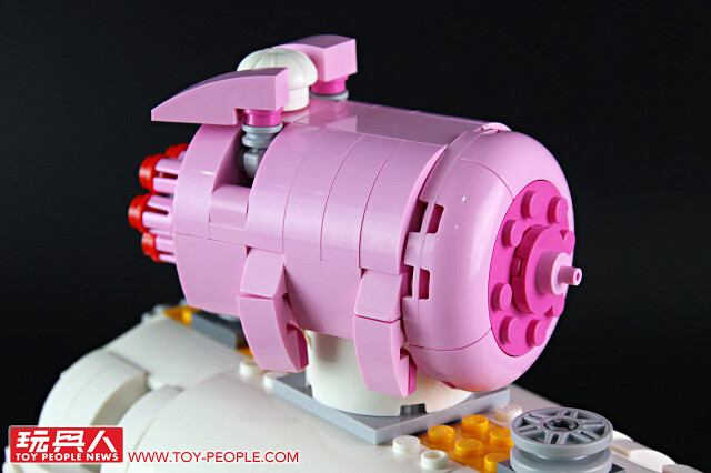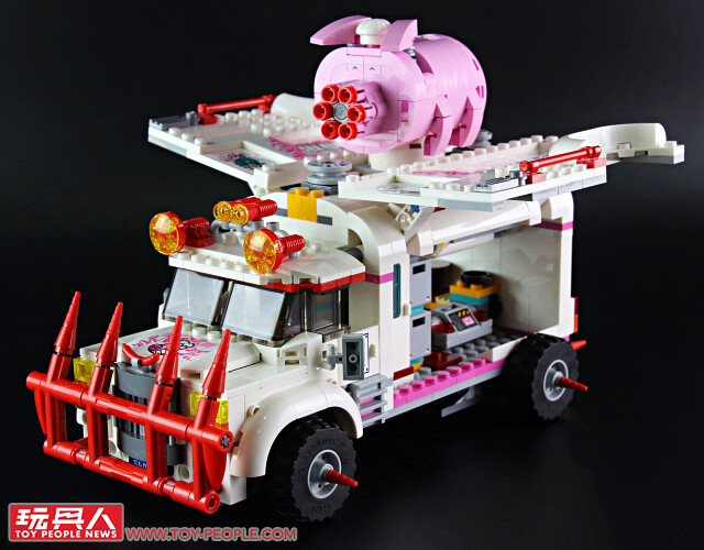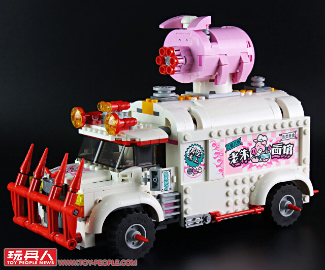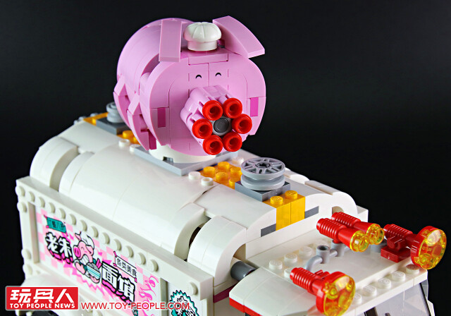 ▼ 先來看餐車本體,組裝完成後長約 25 公分,適合展示而且把玩的手感也不賴,車身部分以白色為主調搭配多張貼紙,車頭的釘耙與車頂的神豬高速射器十分搶眼,而且就連神豬都戴上了高高的廚師帽,有夠可愛。