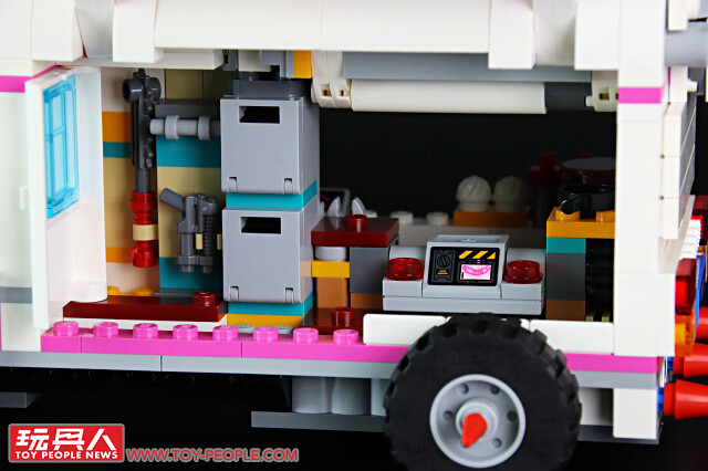 ▼ 接著是車子的內裝,可以看到包含烤箱、刀架、鍋爐、調味罐這類的烹飪必需品,但槍砲武器也沒少,打開以為是冷凍食材庫的白色大門,裡面放的竟然是雷射槍跟電鋸武器,太有趣啦~