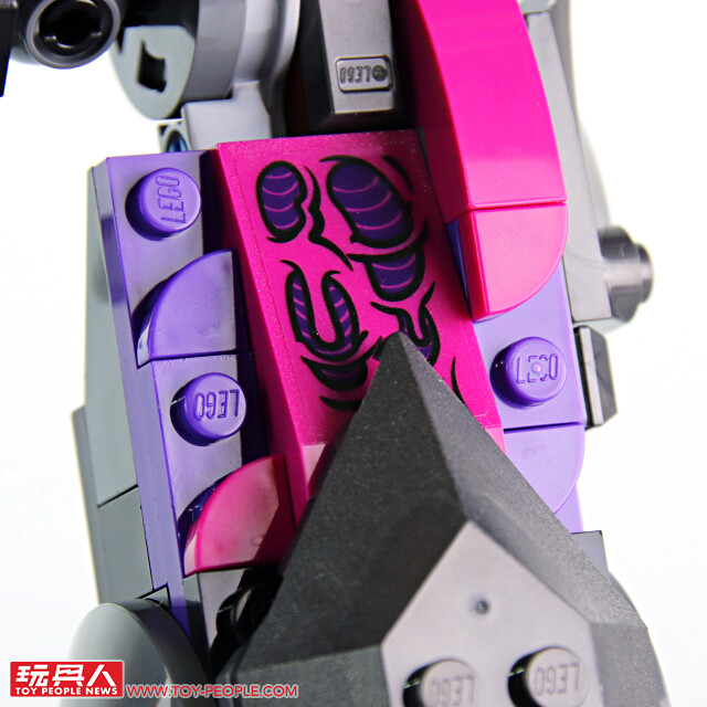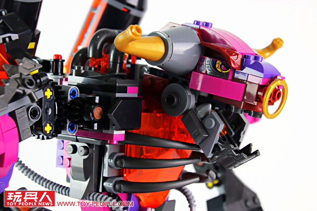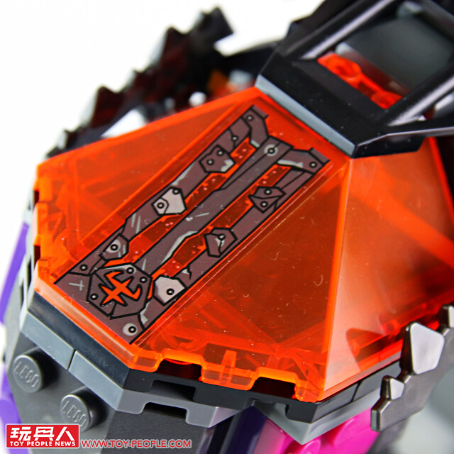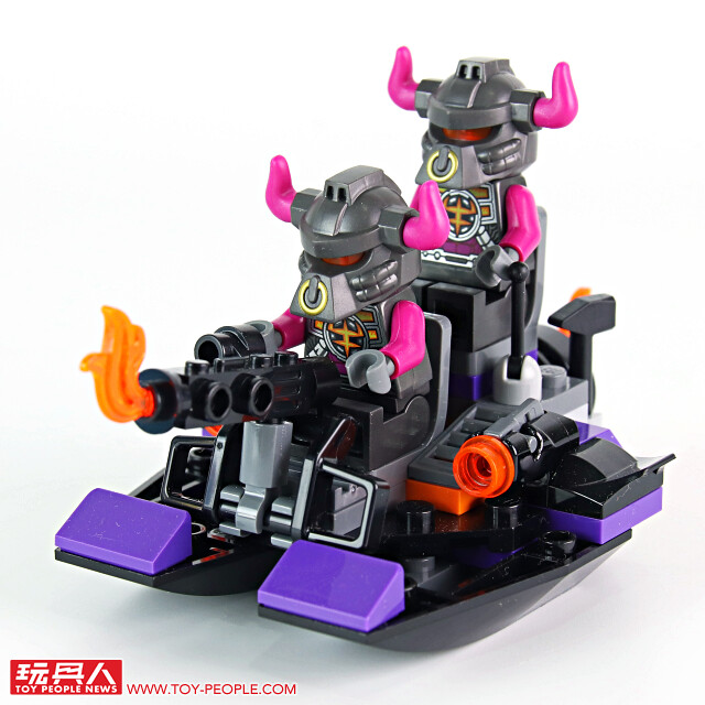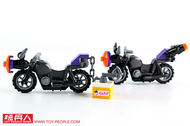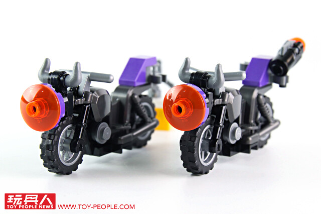 ▼ 最後看到跟牛雜兵們一樣採用紫、黑為主調的機車,除了注入橘色增添亮點外,車頭也製作出牛角造型提升威懾力,而那箱「仙桃」可能是《悟空小俠》系列故事中蠻重要的元素之一,許多盒組都有出現!