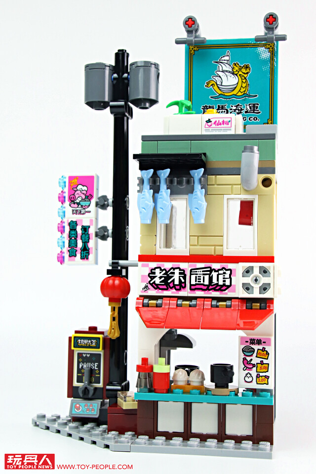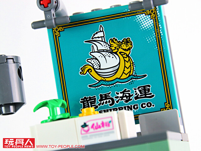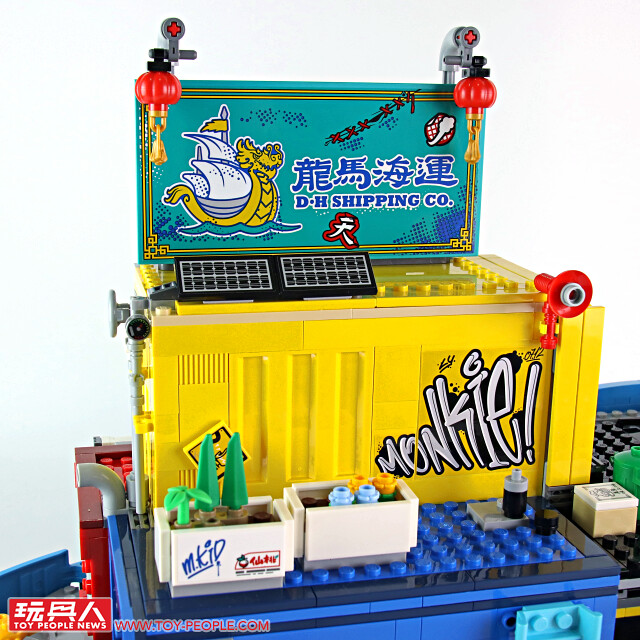 ▼「龍馬海運」的大型立牌極具存在感,兩側還用上燈籠零件裝飾,貼貼紙的時候小心別失誤啦XD~ 黃色貨櫃上的「Monkie!」美式塗鴉很帥啊!