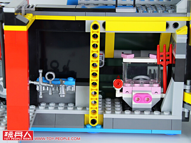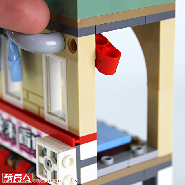 ▼ 更是在屋外暗藏機關,推動水管就可以把牆壁整塊打掉!值得一提的是下方 2×2 的抽風機,這次《悟空小俠》系列盒組大量地使用了這個組合表示抽風機,喜歡 MOC 的玩家不仿記起來以後也能使用。