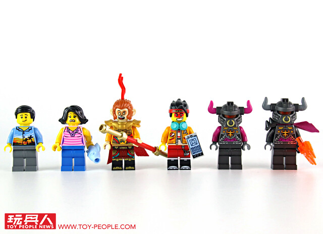 ▼ 再來是這款盒組的人偶一覽,由左至右分別是兩位牛雜兵:Snart、Grunt,主角悟空小俠、朱大廚,以及喬叔(Uncle Qiao),從悟空小俠的身體印刷來看,感覺是跟著朱大廚當起服務生了。