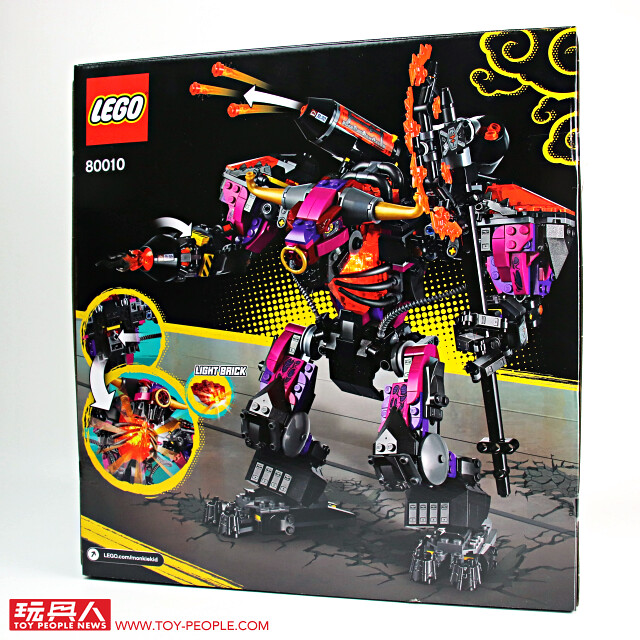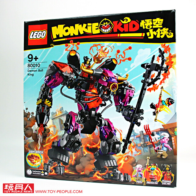再來第三盒同樣是屬於機甲類新作、以牛魔王為題設計的「LEGO 80010 牛魔王烈火機甲」(Demon Bull King),跟上一組齊天大聖黃金機甲相比,雖然這款機甲的尺寸較為迷你,也沒有搭載駕駛艙的設計,但有附上一個發光磚(Light Brick),整體的造型也很有侵略性!