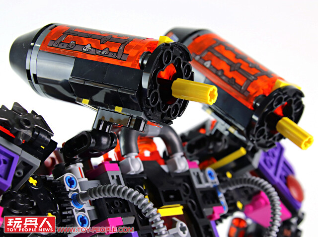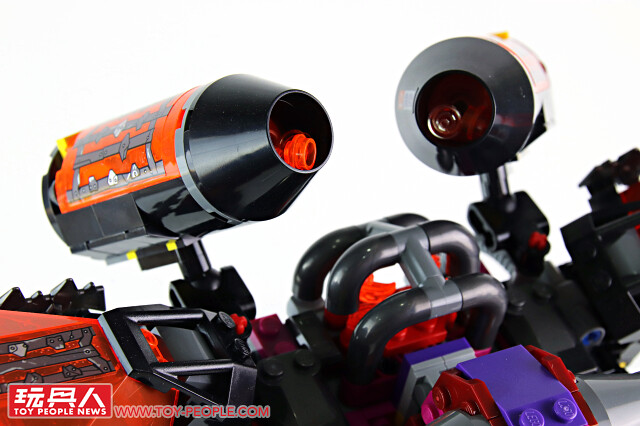 ▼ 背後的雙筒大砲可以藉著按壓黃桿來發射放置於砲筒裡的橘紅子彈,